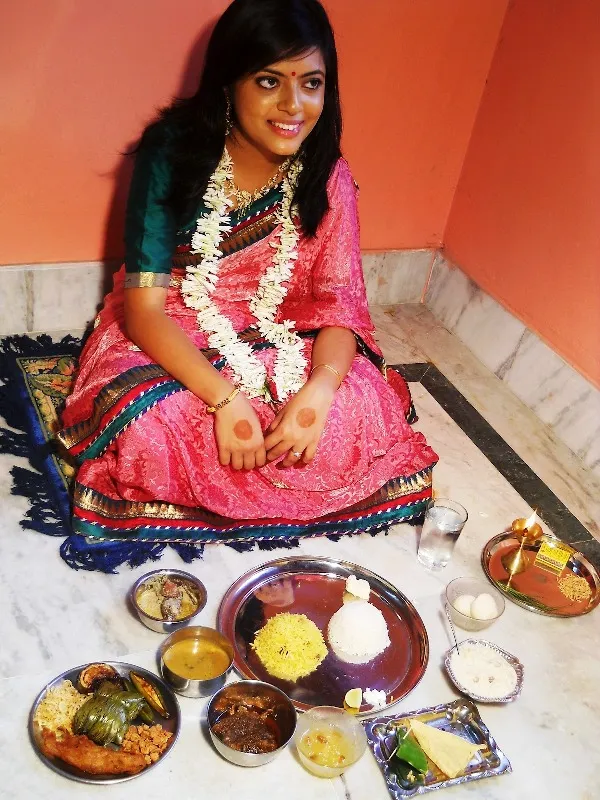 It is a special meal that the groom’s family prepares for the bride. It is the first meal that she eats as a married woman. The bride is dressed in a sari and sits on the ground to eat the meal. It is a symbolic gesture that signifies the bride’s acceptance into the groom’s family.